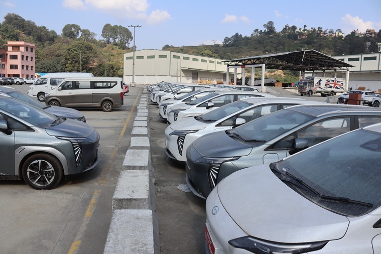 रसुवागढी र तातोपानी नाका हुँदै व्यवसायीले भित्र्याएका ईभी गाडी अहिले भन्सार जाँचपासका लागि चोभारमा थुपारिएका हुन् । बजेटको पूर्वसन्ध्यामा भन्सार जाँचपासका लागि व्यवसायीहरुले गाडी ल्याएको र अहिले चोभार सुक्खा बन्दरगाहमा मात्रै ९५० युनिटभन्दा बढी विद्युतीय सवारी साधन आइपुगेका छन् । नेपाल इन्टरमोडल यातायात विकास समितिका कार्यकारी निर्देशक आशिष गजुरेललका अनुसार रसुवा र तातोपानी नाकामा पनि १ हजार युनिटभन्दा बढी ईभी राखिएका छन् ।