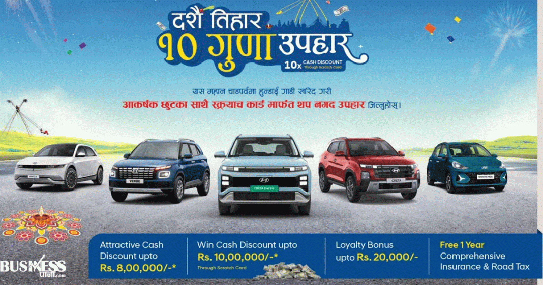 हुन्डाईको दशैं–तिहार अफर: १० गुणा उपहार, स्क्र्याच कार्डमार्फत १० लाखसम्म जित्न सकिने