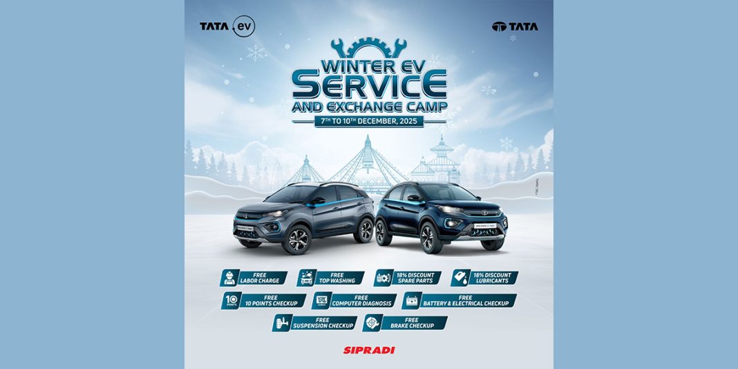 टाटा मोटर्सका लागि नेपालको आधिकारिक वितरक सिप्रदी ट्रेडिङ प्रा. लि. ले विद्युतीय सवारी साधन (ईभी) प्रयोगकर्ताहरूलाई लक्षित गर्दै “Winter EV Service And Exchange Camp” सार्वजनिक गरेको छ । जाडो मौसममा ईभीको प्रदर्शन र सुरक्षालाई थप सुदृढ बनाउन विशेष रूपमा आयोजना गरिएको यो सर्भिस क्याम्प डिसेम्बर ७ देखि १० सम्म सञ्चालन हुने कम्पनीले जनाएको छ ।
