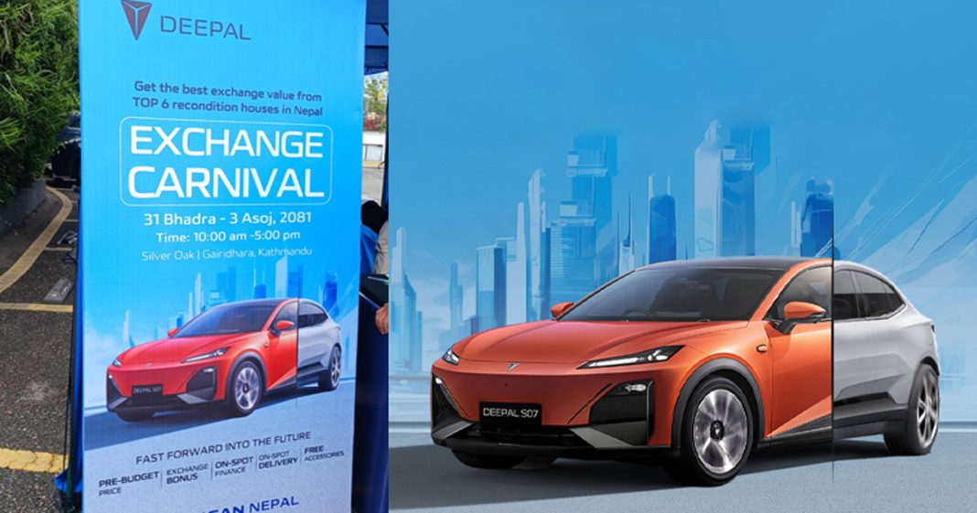 एक्स्चेन्ज कार्निभल बिहान १० बजेदेखि बेलुका ५ बजेसम्म सञ्चालन हुने कम्पनीले जनाएको छ । क्याम्पेन अन्तर्गत ग्राहकले जुनसुकै ब्राण्डका पूराना गाडीसँग दीपल एस–०७ ईभी साट्न सक्नेछन् । यस बाहेक ग्राहकले दीपल एस ०७ र एल ०७ टेस्ट ड्राइभको अवसर पनि पाउने छन् ।