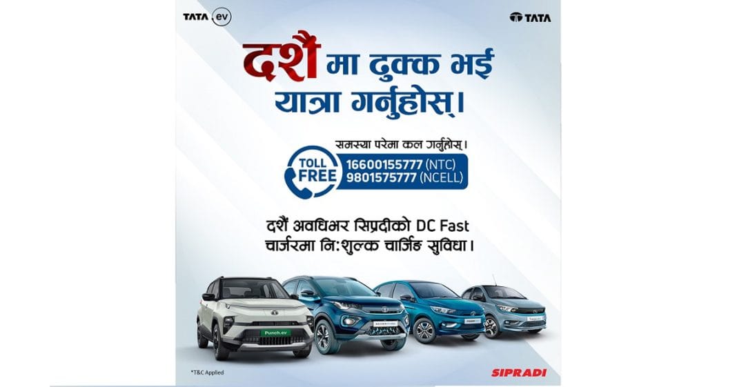 नेपालका लागि टाटा मोटर्सको अधिकारिक वितरक सिप्रदी ट्रेडिङ प्रा.लि.ले चाडपर्वको अवसरमा आफ्ना फास्ट डिसी चार्जिङ स्टेशनमा निःशुल्क चार्जिङको घोषणा गरेको छ ।