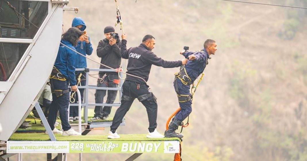 ‘द क्लिफ’मा प्रहरीका ‘कमाण्डो’ प्रशिक्षार्थीद्वारा बञ्जी जम्प