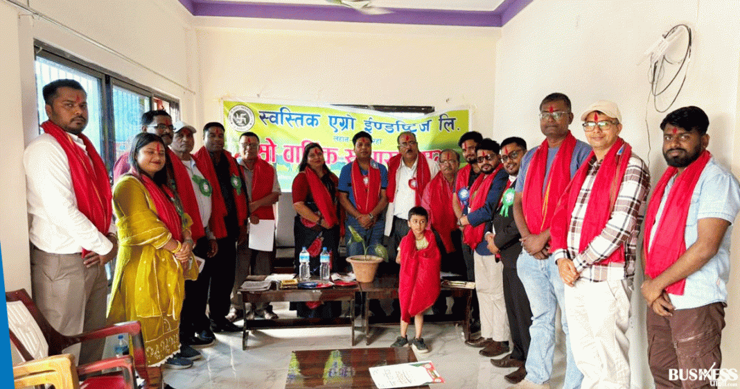 स्वस्तिक एग्रो इण्डष्ट्रिज लिमिटेडको तेस्रो साधारणसभा सम्पन्न भएको छ। चैत्र २१ गते शनिवार कम्पनीको गाई फार्म रहेको स्थान धनुषाको तल्लो गोद्वारमा साधारणसभा सम्पन्न भएको हो ।