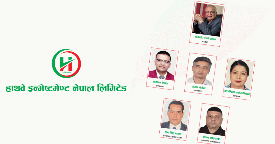 हाल हाथवे इन्भेष्टमेन्ट नेपाल लिमिटेडमा ६ जना संचालक रहेका छन् । जस मध्ये ४ जना संस्थापक समूहबाट संचालक हुन् भने बाँकि दुई जना सर्वसाधारण समूहबाट संचालक हुन् ।