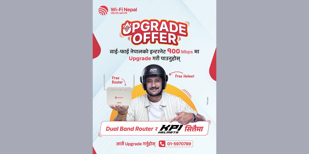 वाईफाई नेपालकाे अफर: १०० Mbps को इन्टरनेटमा अपग्रेड गर्दा Dual Band Router र KPI Helmet सित्तैमा